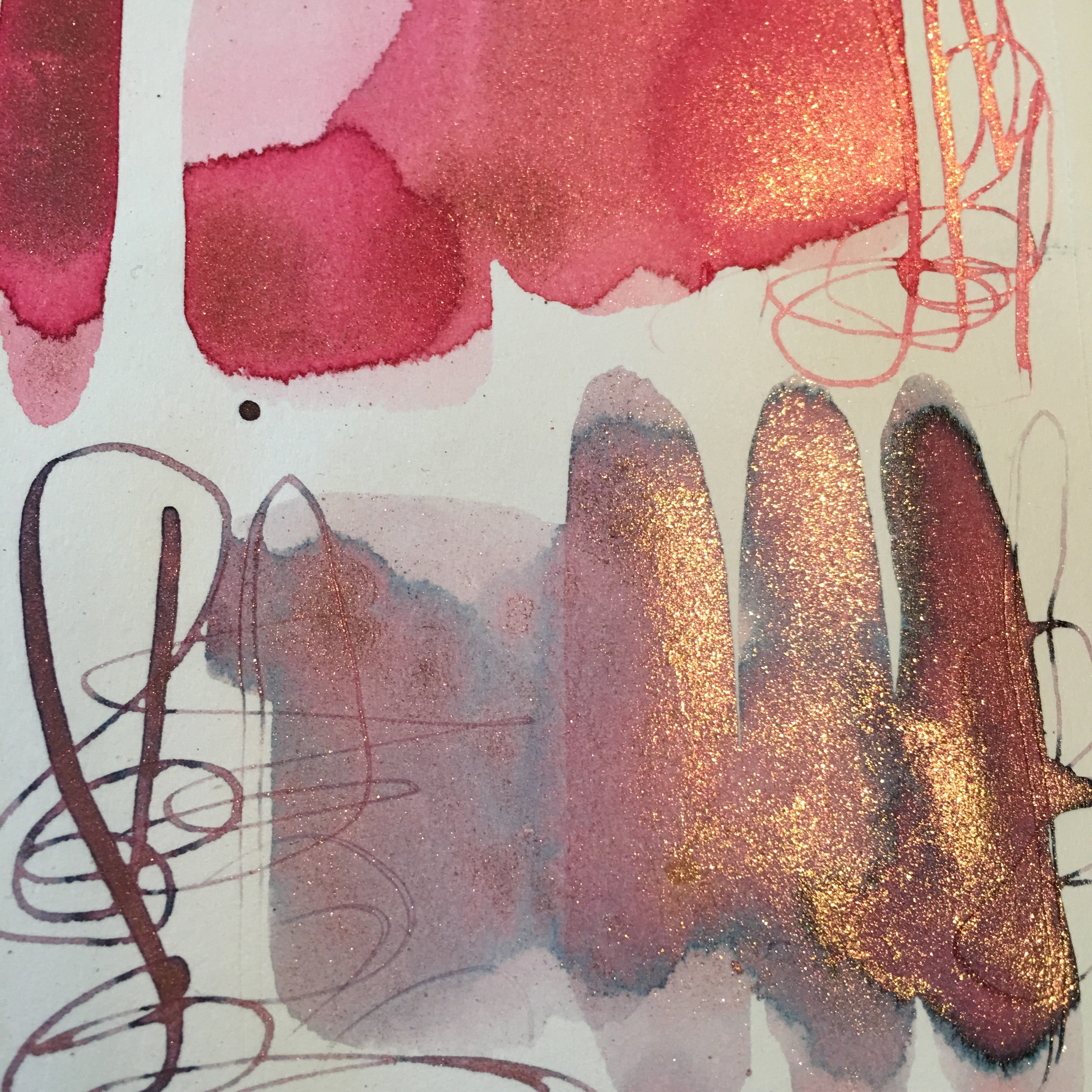 The colors create a number of textured effects depending on the substrate, type of paper and the amount of water used when they are applied. The magic unfolds as the colors dry and the pigments start to separate. The colors have a luster when light gently hits the surface and some have a slightly gritty texture.