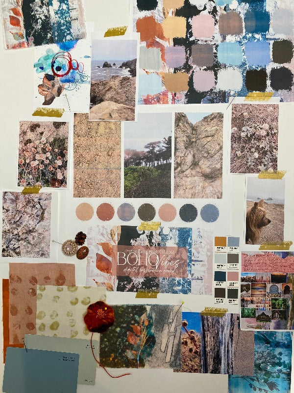 Boho Coastal Vibes collection, a beautiful subtle fall palette that has influences of living a carefree bohemian life infused with a coastal beach vibe inspired by a hike through the Sutro Baths at Lands End in Ocean Beach San Francisco. During this chilly day, I encountered a beautiful connection to nature as the sound of crashing waves echoed through the ruins, and the plants were shrouded in the chilly autumn fog.