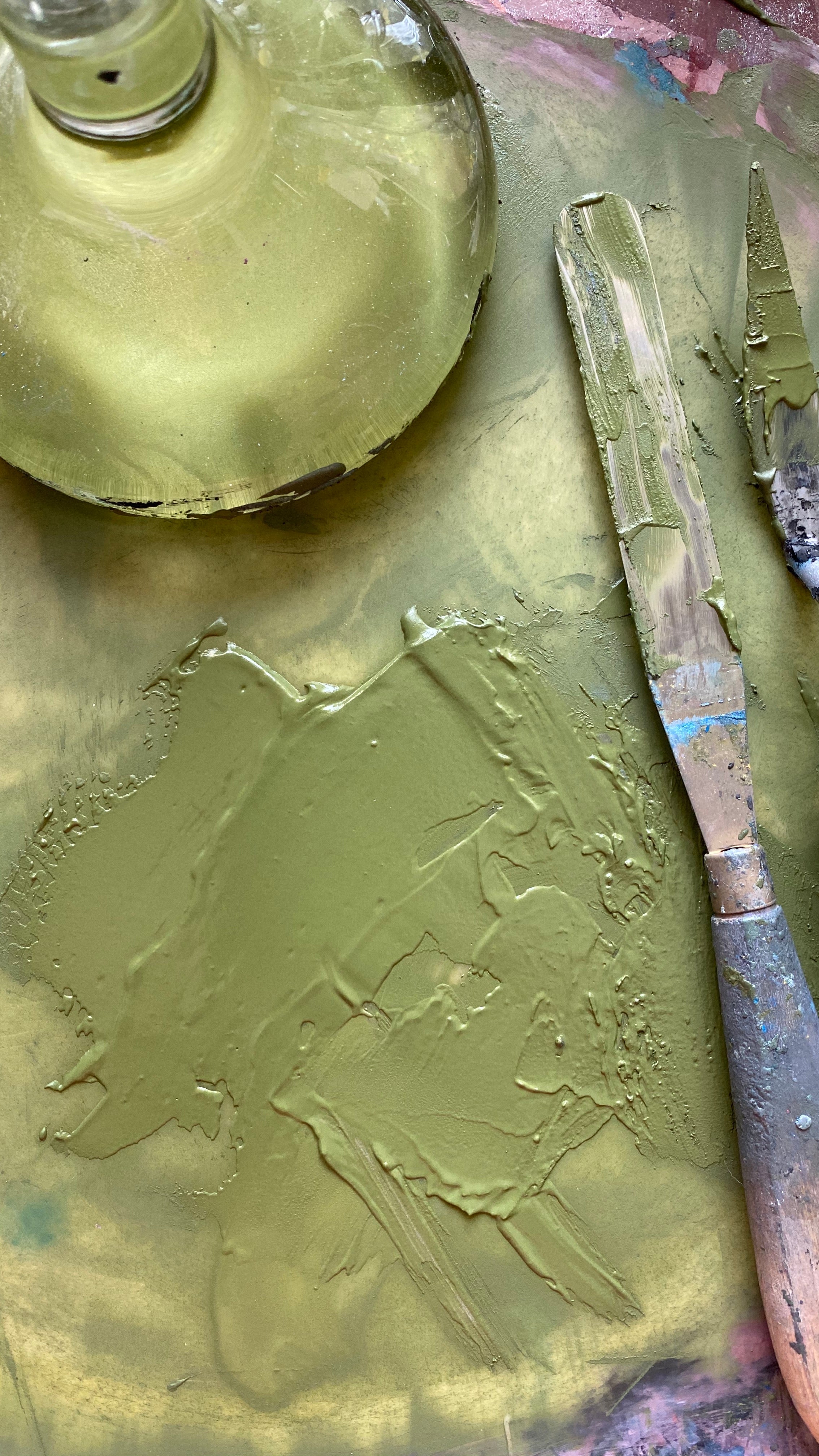 Each handmade color is carefully mulled on a marble slab to create a rich textured granulating watercolor paint.