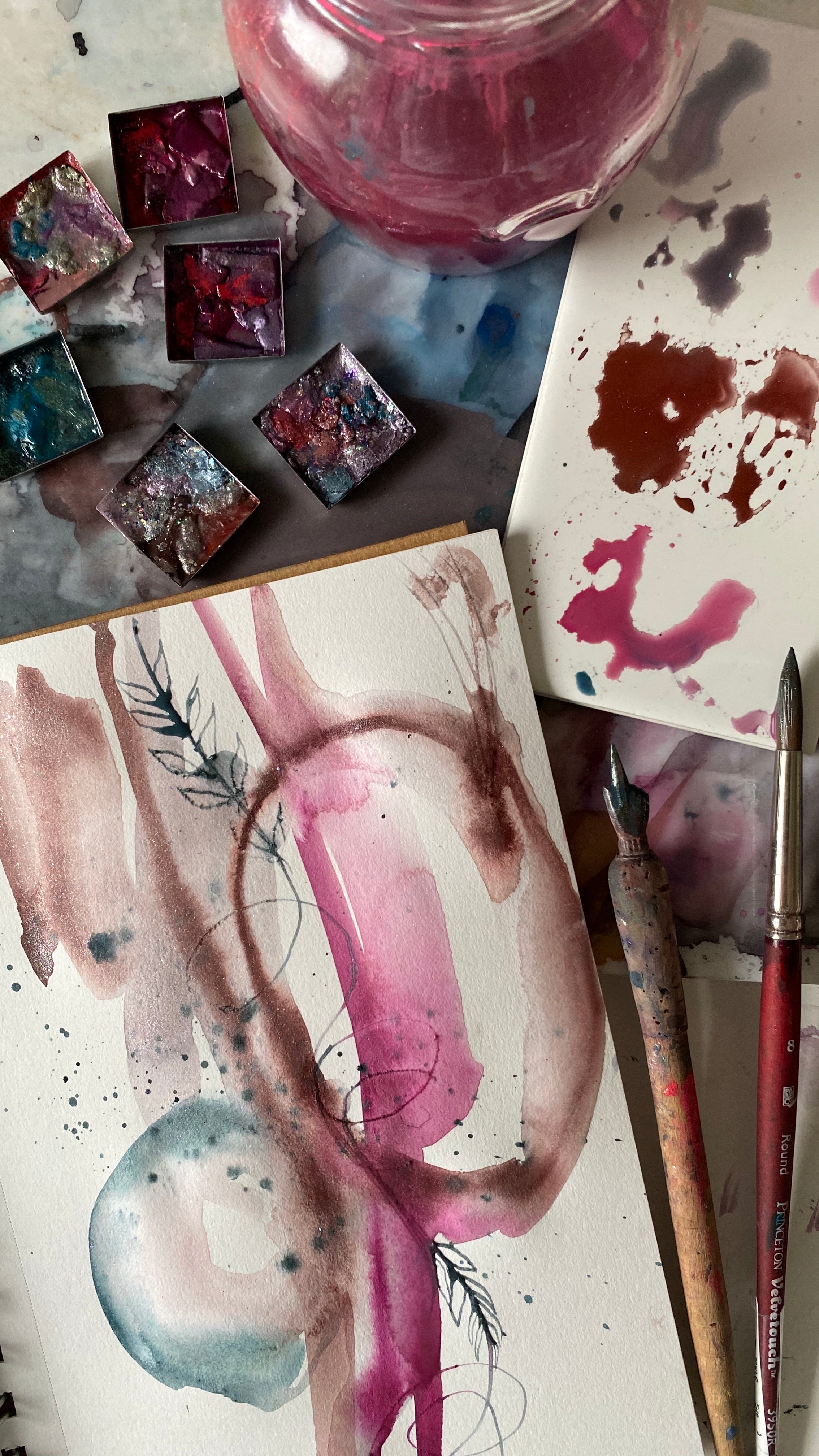 You'll receive a beautiful package full of handcrafted watercolor in a thematic color palette...perfect for your art journal or sketchbook. And great for WATERMEDIA PLAY AND FLUID ART techniques.