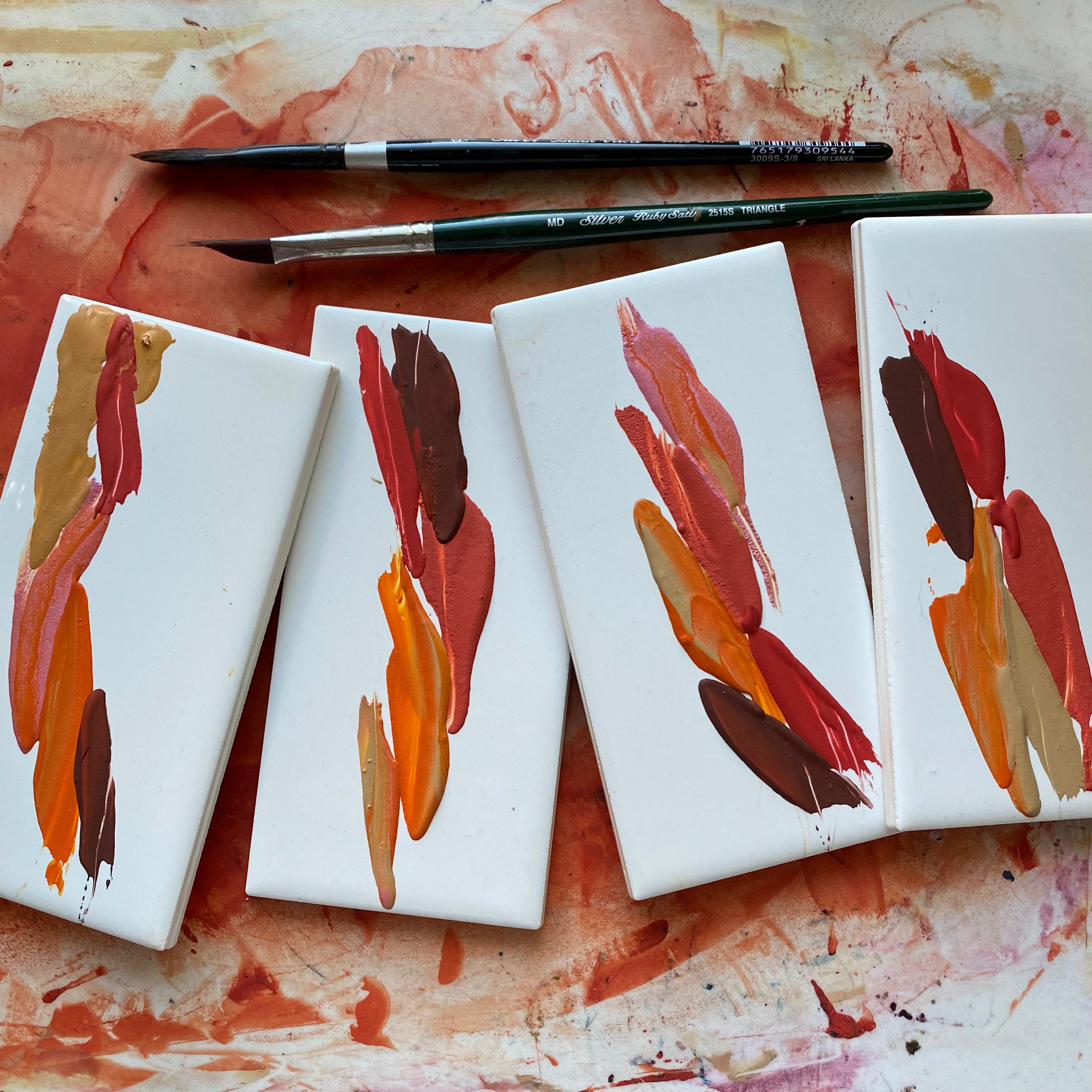#tracibautistaCOLOR FOREVER CHASING SUNSETS multi-color swatch ceramic tile + watermedia workshop.