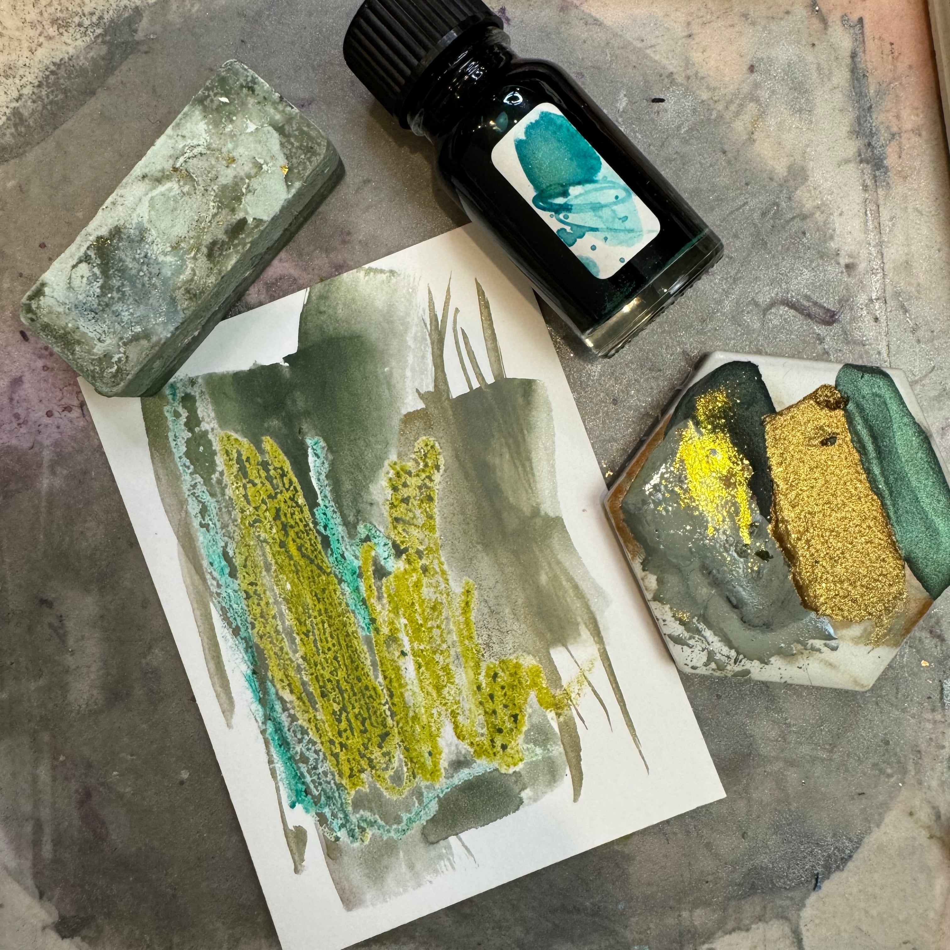 You'll receive a beautiful package full of handcrafted watercolor in a thematic color palette...perfect for your art journal or sketchbook. And great for WATERMEDIA PLAY AND FLUID ART techniques.