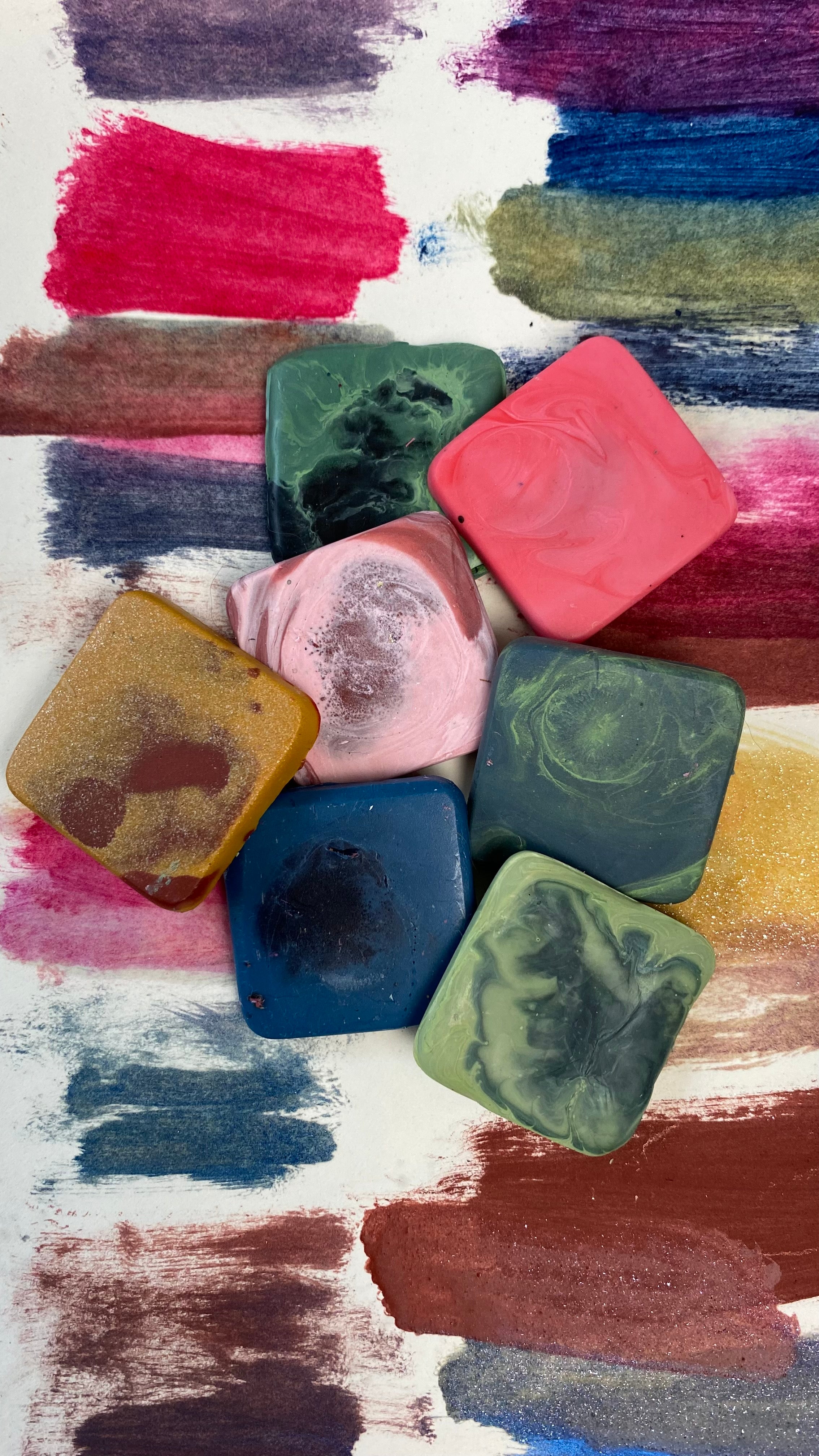 You'll receive a beautiful package full of handcrafted wax paints, they can be used as a wax resist or heated and painted onto paper or canvas...perfect for your art journal or sketchbook..great to mix with WATERMEDIA AND FLUID ART techniques.