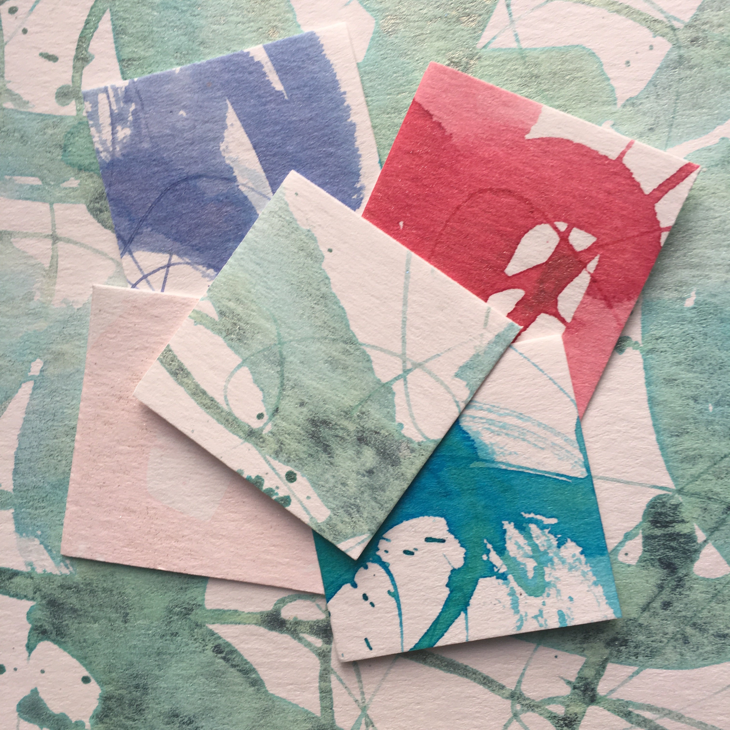 The colors create a number of textured effects depending on the substrate, type of paper and the amount of water used when they are applied. The magic unfolds as the colors dry and the pigments start to separate. The colors have a luster when light gently hits the surface and some have a slightly gritty texture.