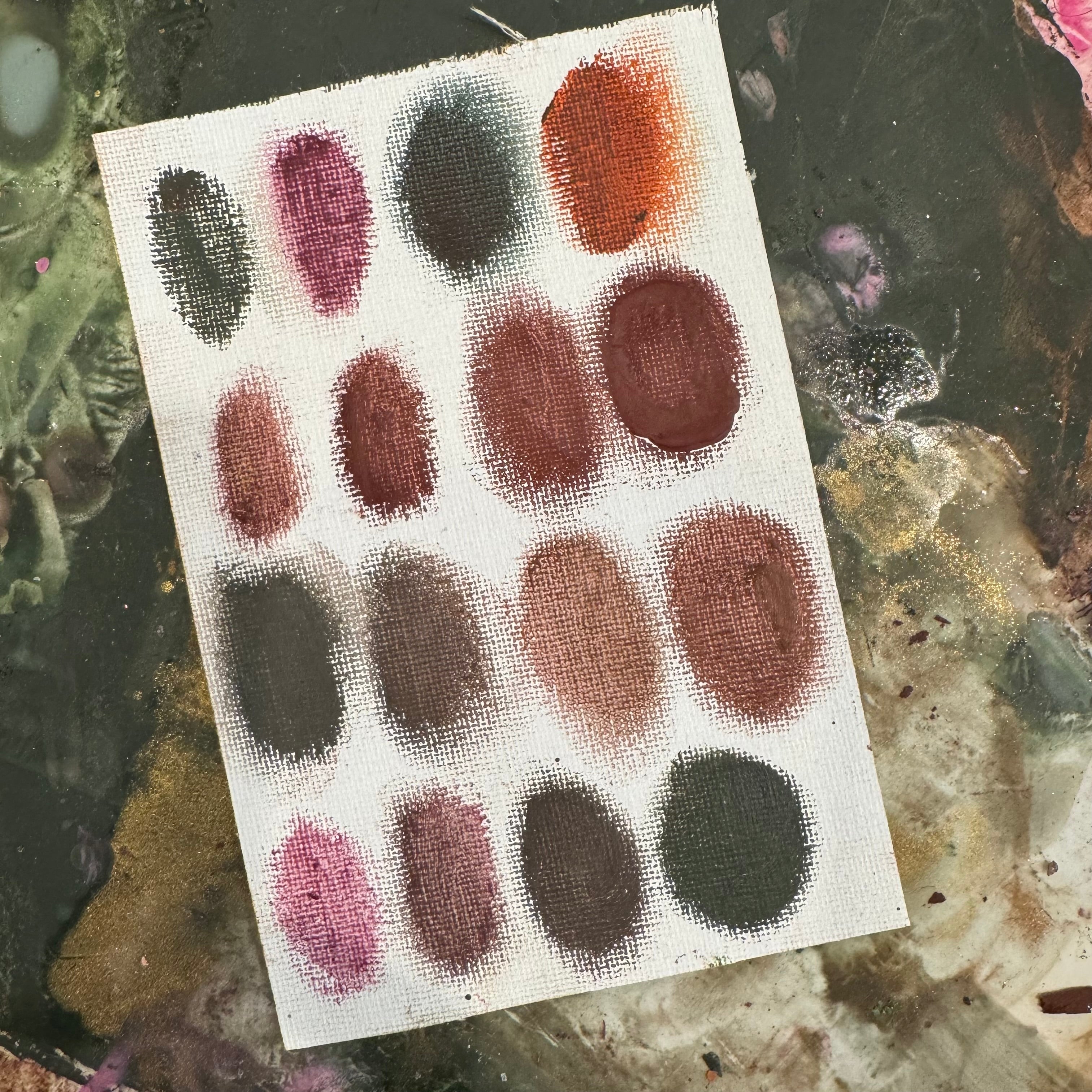 Winter Landscapes is my moody + grounded palette: deep berry woods, evergreen shadows, warm stone neutrals, and night-sky depth.