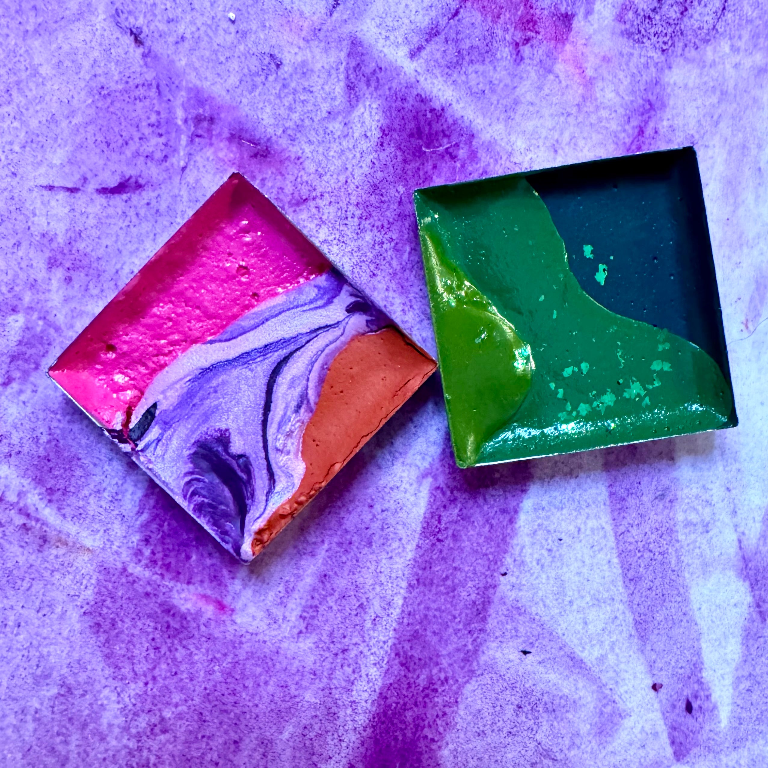 The entire handcrafted artisanal mixed media collection creates a beautiful range of colors when they are mixed and layered 🎨 Some paints have a bit of additional metallic flakes while others are marbled with layers of colors.
