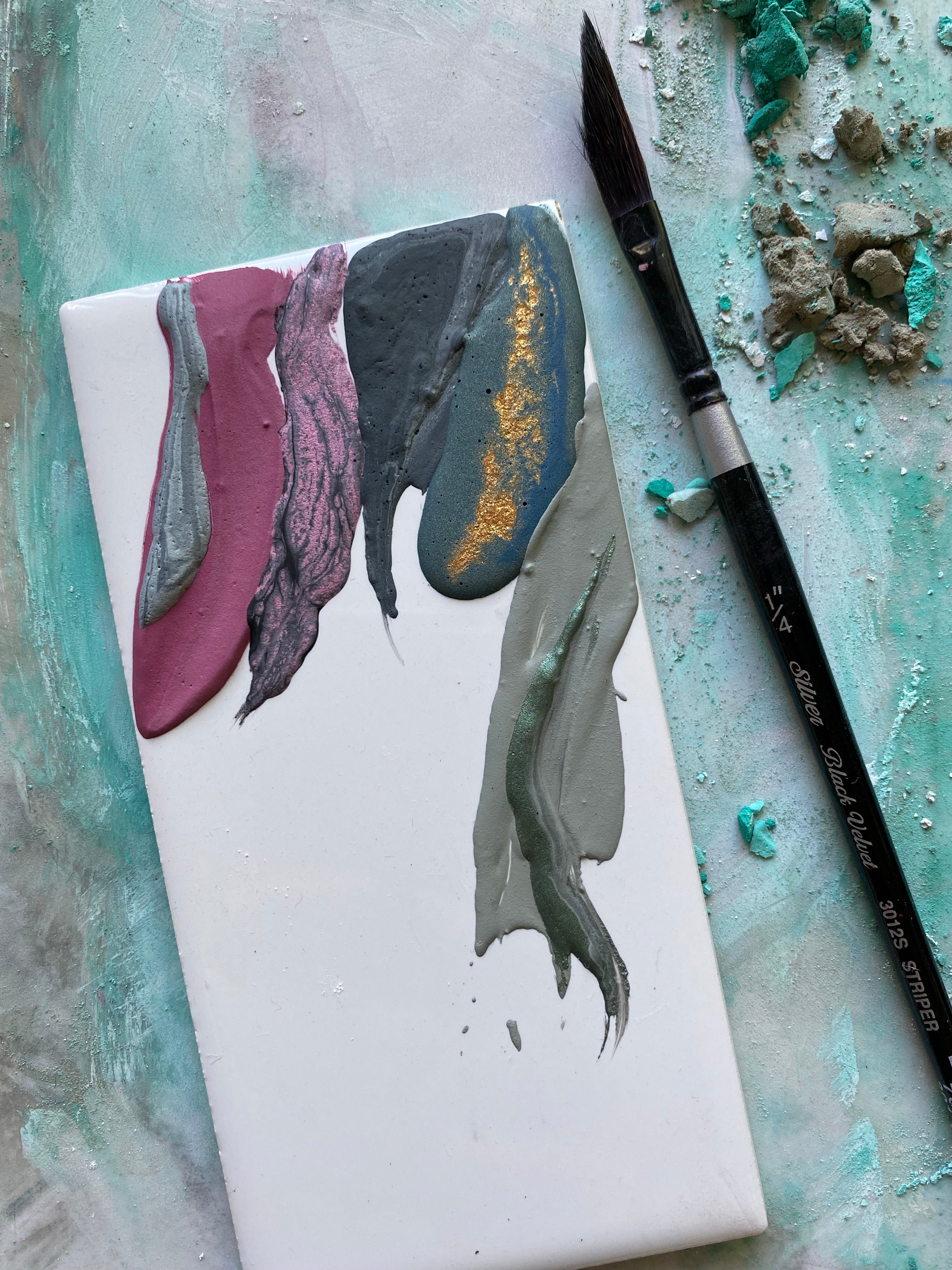 Most of my paint collections have a range of 10-15 colors since they are made in very small batches. I started creating these swatch tiles as a way to save each color as I made the collection for my own personal use.